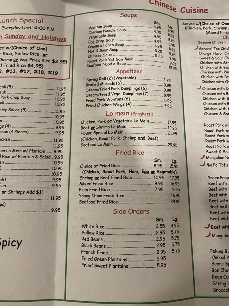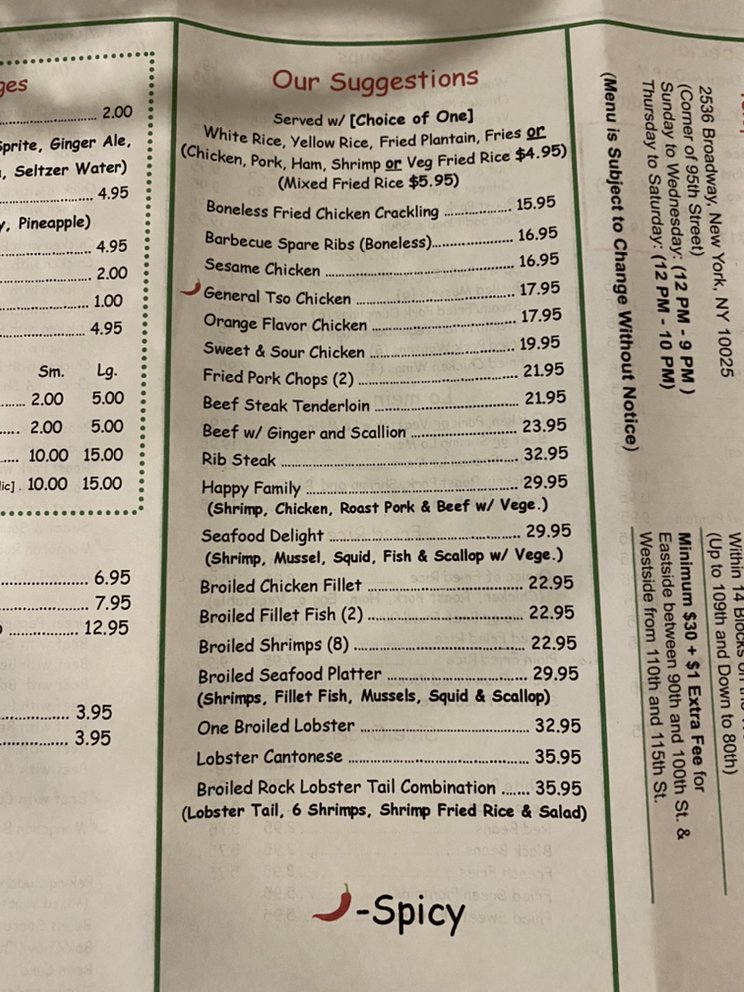 La Nueva Victoria, a Spanish-Chinese fusion restaurant located in New York, offers a wide range of amenities including delivery, takeout, vegan and vegetarian options, and a full bar. Known for their 22oz cocktails and bottled beer selection, this spot is perfect for lunch, dinner, or late-night cravings. The menu features tempting dishes like boneless fried chicken, sesame chicken, and broiled fillet fish. Customers rave about the consistent quality of the food, with favorites like lobster, pepper steak, and fried chicken. The nostalgic flavors harken back to a time of classic Chinese cuisine, with dishes that are comforting and flavorful. With a community feel and attentive service, La Nueva Victoria is a must-visit for those seeking fresh and satisfying meals.